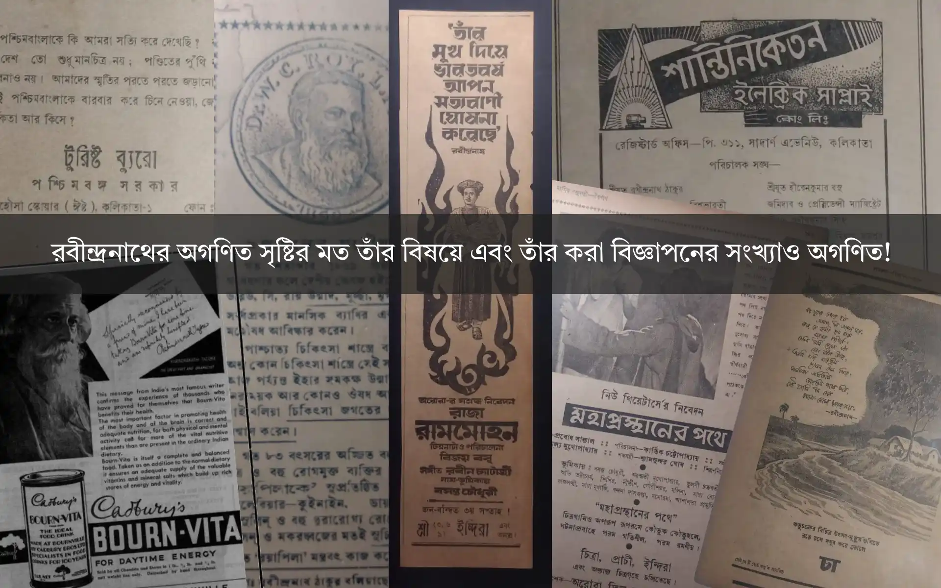 একটি ইংরেজি বিজ্ঞাপনে ‘bournvita’-র প্রচারে অংশ নিয়েছিলেন রবীন্দ্রনাথ। এটি খুব কমই চোখে পড়ে। নির্ভরযোগ্য সূত্রে জানা যায় যে কবির মহাপ্রয়াণের পরে কলকাতা পুরসভা থেকে প্রকাশিত ‘ক্যালকাটা মিউনিসিপাল গেজেট’-র বিশেষ সংখ্যায় বিজ্ঞাপনটি ছাপা হয়েছিল। কিন্তু সেটাই প্রথম নয়, তার আগে প্রবাসী বা ভারতবর্ষে এই বিজ্ঞাপনটি সম্ভবত প্রকাশ পেয়েছিল। গোদরেজ সাবানের একটি বিজ্ঞাপনে তিনজন বিখ্যাত মানুষ অংশগ্রহণ করেছিলেন, তাঁদের মধ্যে রবীন্দ্রনাথ ছাড়াও ছিলেন চক্রবর্তী রাজগোপালচারী আর অ্যানি বেশান্ত। বিজ্ঞাপনের পাশাপাশি সাবানের মোড়কের মধ্যেও এঁদের তিনজনের উক্তি সম্বলিত একটা কার্ডও পরিবেশন করা হয়েছিল।